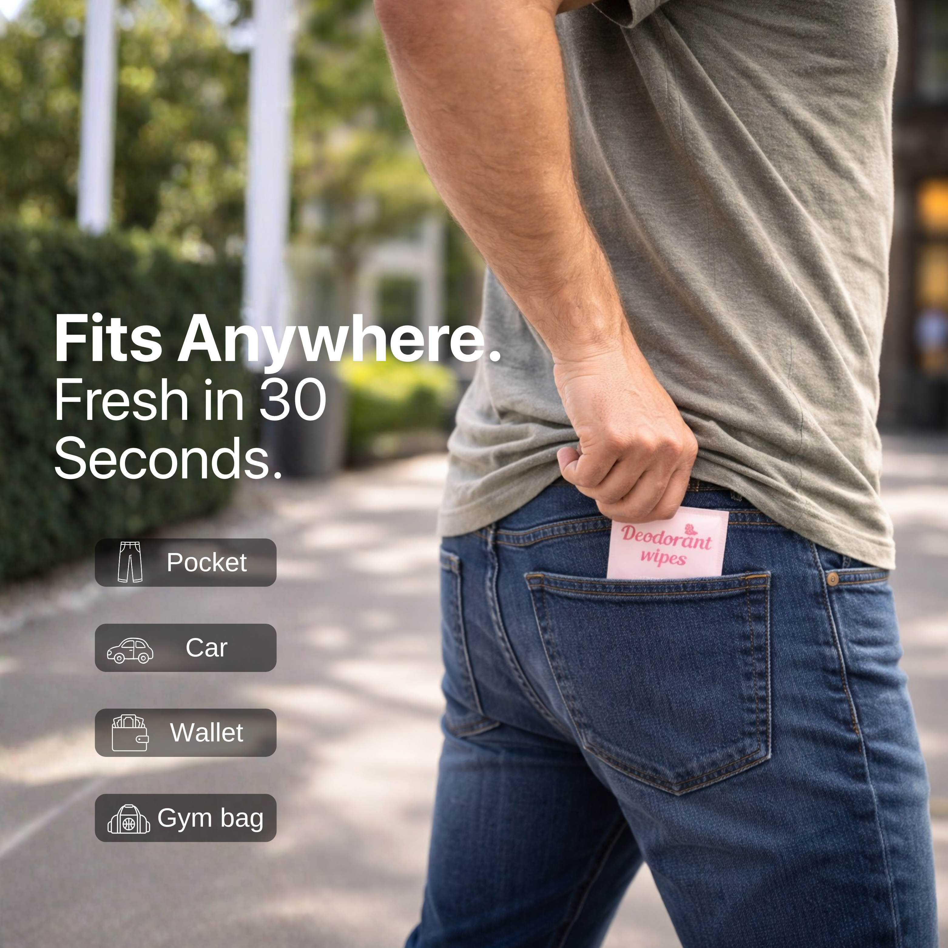 Dermatologist-formulated wipes that remove bacteria and sweat, then apply fresh deodorant. All in one wipe.