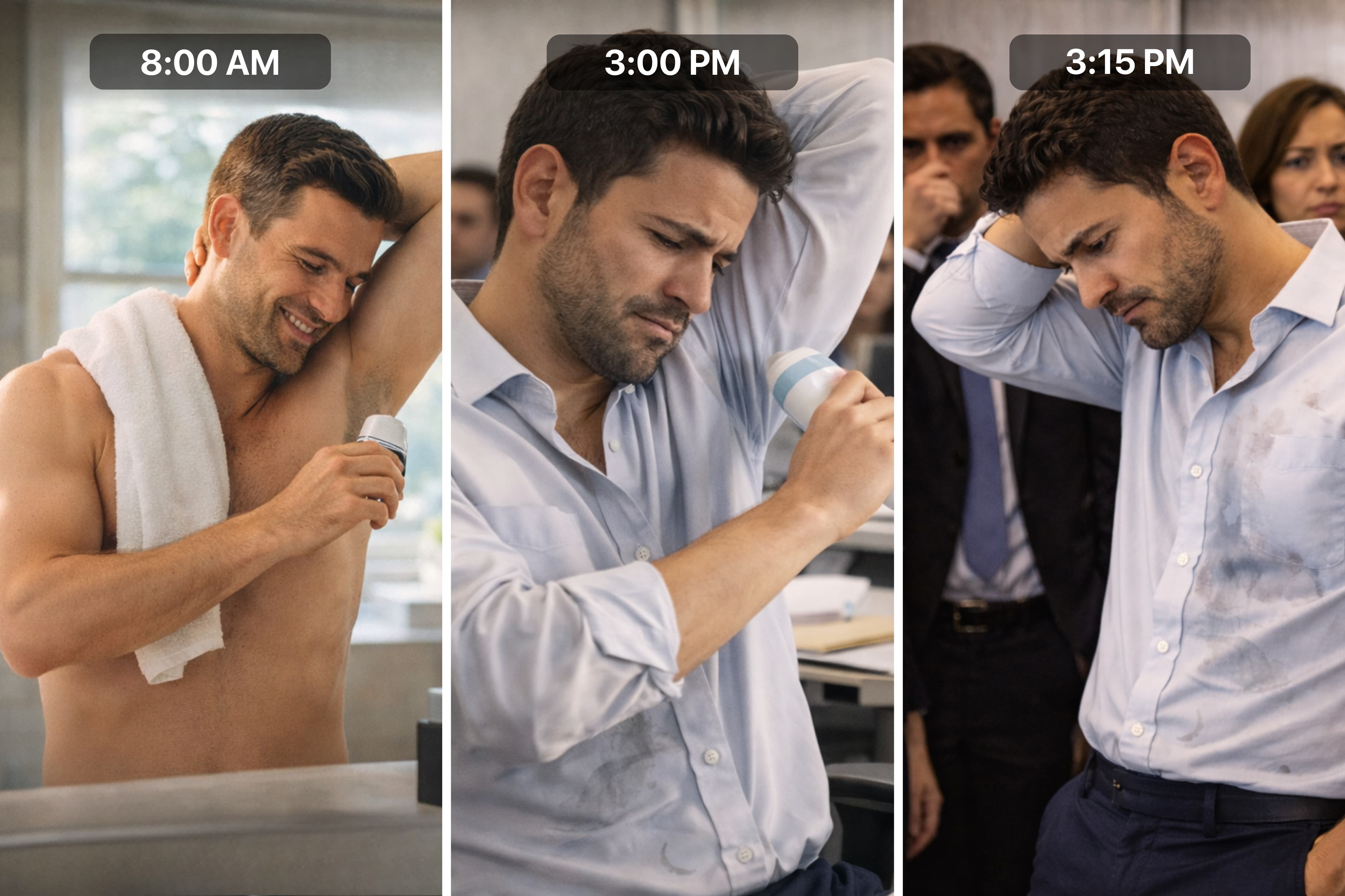 Mike kept losing client deals because he worried people could smell him. Sarah's a dermatologist who knew why reapplying deodorant doesn't work, it layers on top of sweat and bacteria.